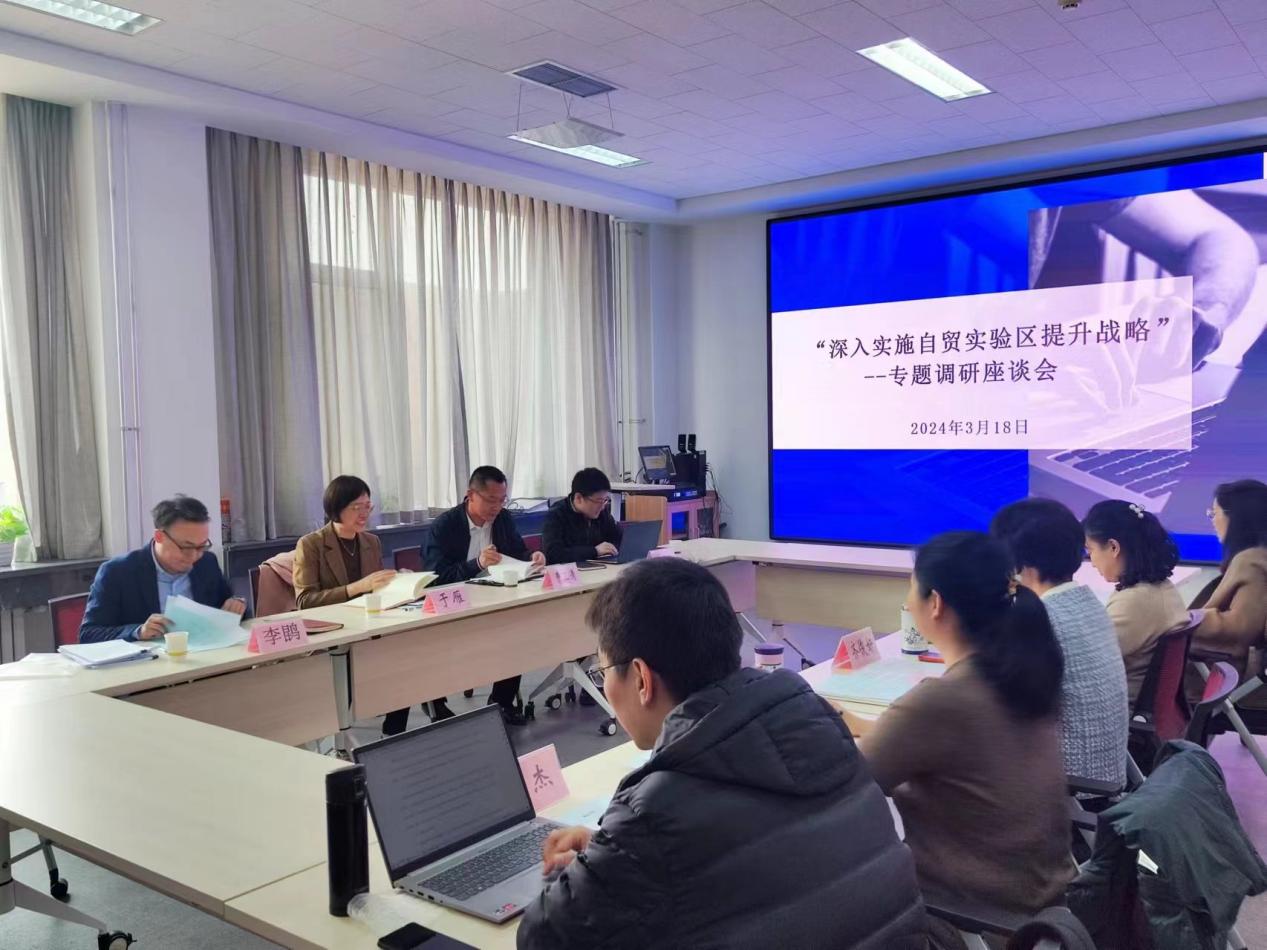 ,进行“深入实施自贸试验区提升战略”专题调研。三方就天津自贸区制度创新、高水平开放、天津经济高质量发展、政产学研互动、课题合作等事宜进行了广泛而充分的交流。