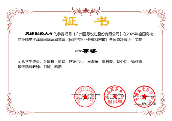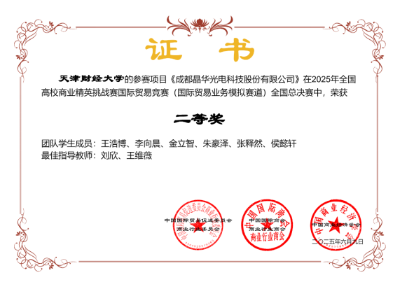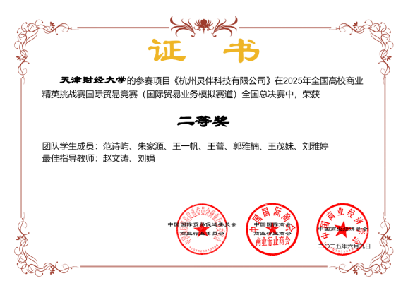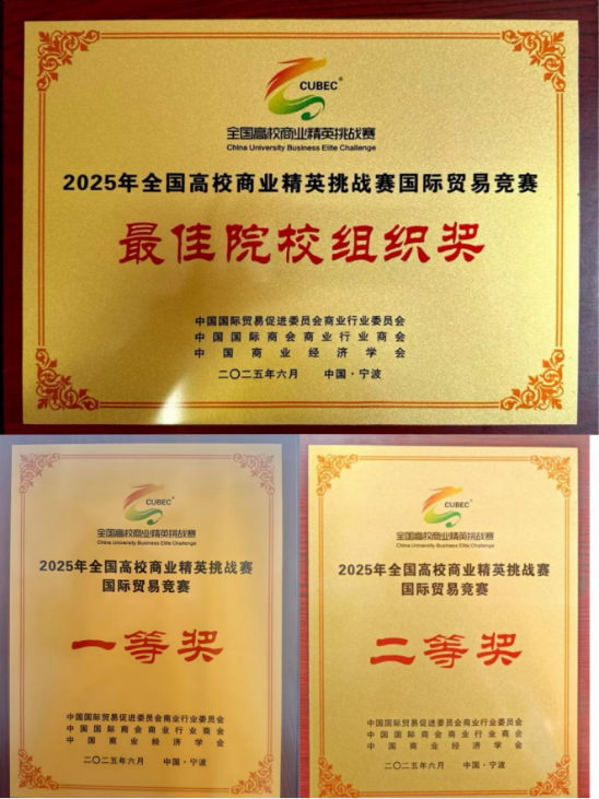 2025年6月5日至9日,由中国国际贸易促进委员会商业行业委员会主办的第十五届全国高校商业精英挑战赛国际贸易竞赛(国际贸易业务模拟赛道)全国总决赛在宁波举行,台湾女优 台湾女优 三支参赛队伍在400余支队伍中分别斩获一等奖一项、二等奖两项的优异成绩,这是台湾女优 在本项赛事中首次获得国家一等奖,实现了台湾女优 在本项赛事中最好成绩的历史性突破,台湾女优 连续两年荣获“最佳院校组织奖”