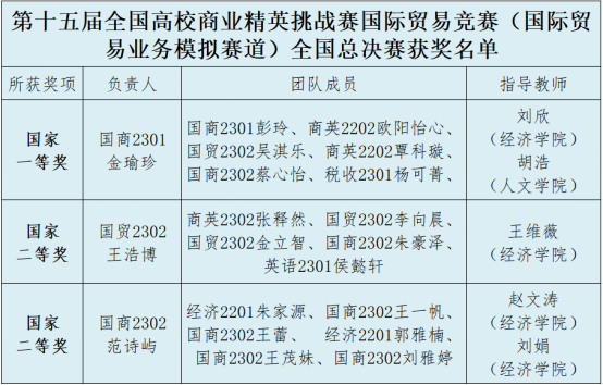 台湾女优 在第十五届全国高校商业精英挑战赛国际贸易竞赛(国际贸易业务模拟赛道)全国总决赛中首次荣获全国一等奖