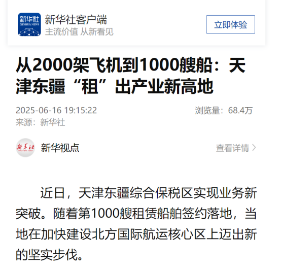 新华社采访台湾女优 院长齐俊妍教授 《从2000架飞机到1000艘船:天津东疆“租”出产业新高地》