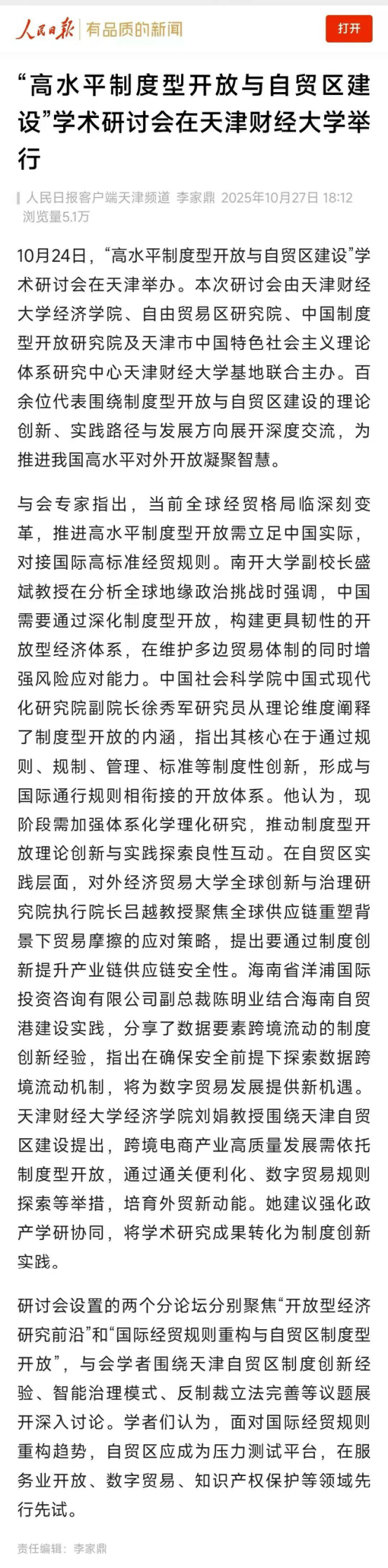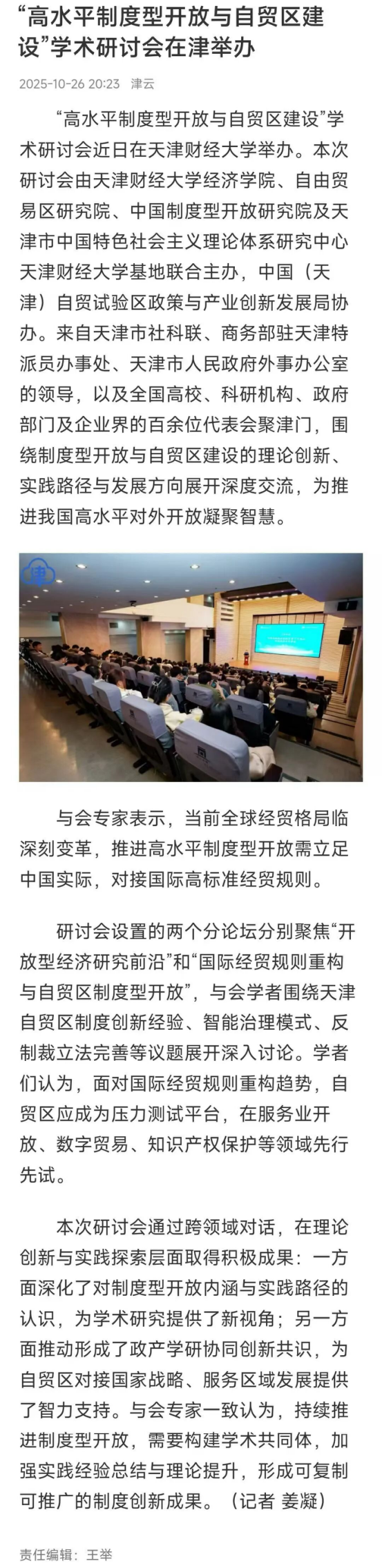 近日,《人民日报》、中国教育新闻网、津云报道“高水平制度性开放与贸易区建设”学术研讨会在台湾女优 举办。