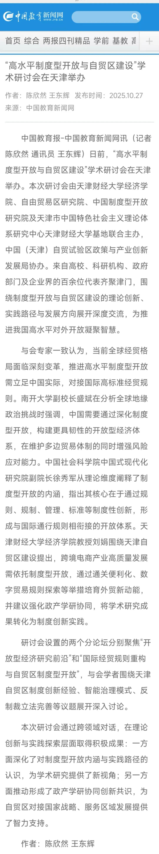 《人民日报》、中国教育新闻网、津云报道“高水平制度性开放与贸易区建设”学术研讨会在台湾女优 举办