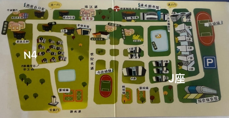 在N4二楼。同学们从北一门入校,面向西院唯一的7-11超市门,沿左边路向南约300米可到N4号楼。