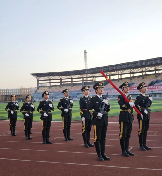 天财国旗护卫队迈着沉稳且坚定有力的步伐,护送着国旗庄重入场。伴随着激昂雄壮的国歌声,鲜艳的五星红旗在微风轻拂下顺着旗杆缓缓升起。全场师生整齐肃立,目光紧紧追随着国旗,行着注目礼。在这一时刻,每个人心中涌动的不只是对往昔峥嵘岁月的深情回望,更是一次爱国主义精神的深刻洗礼与传承。