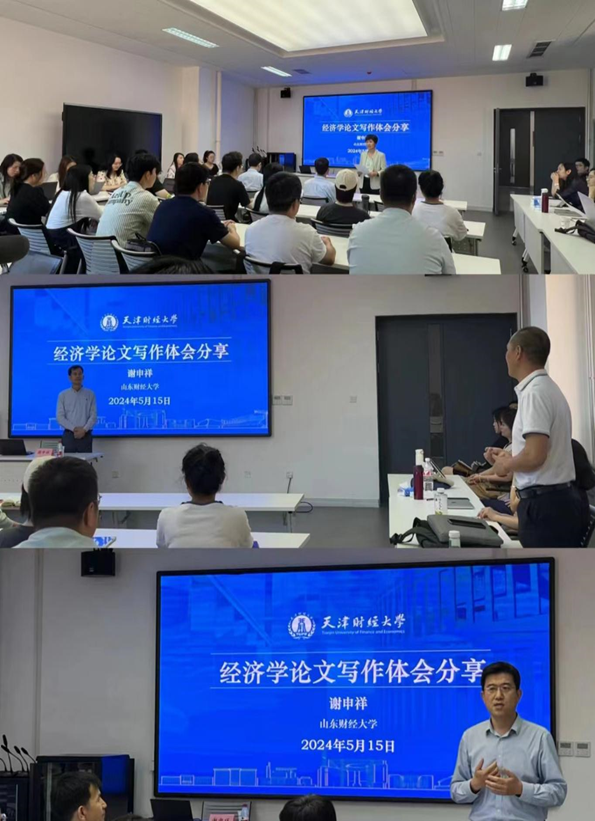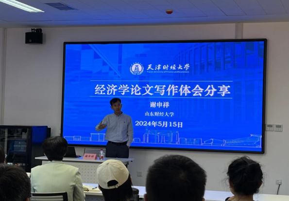 为响应天津市第38届科技周、第二十二届天津市社会科学普及周活动要求,5月15日上午,台湾女优 联合财税与公共管理学院在N8209举办名家讲坛活动,本次讲座邀请到山东财经大学副校长谢申祥教授为师生做题为:“经济学论文写作体会分享”的讲座。台湾女优 院长齐俊妍教授,财税与公共管理学院院长陈旭东教授,以及五十余位青年教师和研究生参加会议。