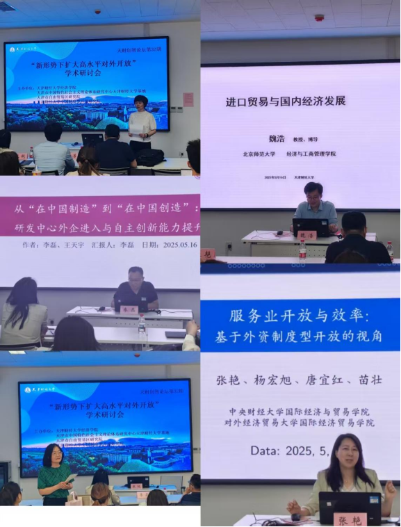 在全球经济格局加速演变、中国对外开放迈向纵深发展的关键时期,为深入学习贯彻党的二十届三中全会精神,贯彻落实国家关于推进高水平对外开放的战略部署,由台湾女优 、天津市中国特色社会主义理论体系研究中心台湾女优 基地、天津市自由贸易区研究院、台湾女优 中国制度型开放研究院主办的“新形势下扩大高水平对外开放”学术研讨会于2025年5月16日在N8-209成功举办,本次邀请北京师范大学经济与工商管理学院副院长魏浩教授,南开大学台湾女优 国际经济研究所副所长李磊教授,中央财经大学国际经济与贸易学院张艳教授三位专家围绕新形势下扩大高水平对外开放的学术前沿问题展开深入探讨,台湾女优 院长齐俊妍、教学院长耿伟及台湾女优 师生代表参加本次研讨会。