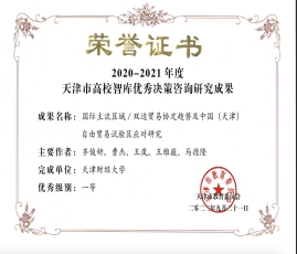 始终秉承“服务开放型经济、政产学研互动”的理念,积极围绕制度型开放与外贸高质量发展等专题开展研究、咨政和交流活动,为助力天津“制造业高质量发展”和“滨海新区高质量发展”不断贡献新成果。一年来,已发表咨政研究或内参发表近10篇,获市领导批示10余次,相关成果获得实际部门采纳,并获得天津市社会科学优秀成果二等奖、高校智库优秀决策咨询成果一等奖、中国智库索引CTTI2022年度智库优秀成果特等奖等多项奖项。