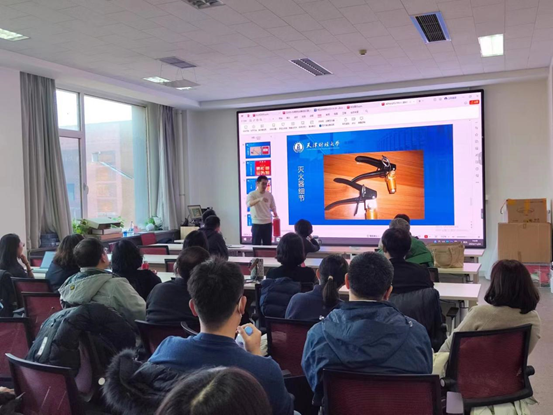 于2023年11月24日下午,在N4-211开展“筑牢安全防线 共建平安校园”系列活动。本次活动邀请到了校保卫处消防与安全管理办公室的刘立伟老师为大家传授消防安全和防电信诈骗安全知识。本次活动包括“消防安全知识讲座”“防电信诈骗知识讲座”“安全工作专题研讨”及“消防安全演练”四个部分,学院领导班子和广大教职工参加了活动。