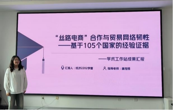 第十一期出站同学代表李曾、孔玉翠、高曼等分享了他们的学术成果和经验。李曾同学分别从引言、文献综述、实证分析和结论与政策建议等部分,详细阐述了她的论文《“丝路电商”合作与贸易网络韧性——基于105个国家的经验证据》,同时,她还跟同学们分享了几点学术写作经验:首先就是多阅读顶刊上的文献,学习写作方法,然后要拓展数据库来源,除了校内提供的数据库外,还可以多搜集一些其他的公开数据库,最后就是熟练掌握实证软件的操作,用以支撑文章的实证研究;孔玉翠同学从曹州面塑当下文化传承的困境入手,生动地介绍了她的研究《“别开生面”——基于Z世代偏好的曹州面塑传承与创新》,并提出在实践时可以和当下热点相结合,为论文内容注入活力;高曼同学从企业创新能力提升和供应链发展之间的关系着手,向大家讲述了她的论文《供应链数字化与企业创新效率》,之后她为大家分享了关于选题的经验,可以从平时老师上课讲的话题为切入点,寻找自己感兴趣的领域来探索,并积极与指导老师沟通。