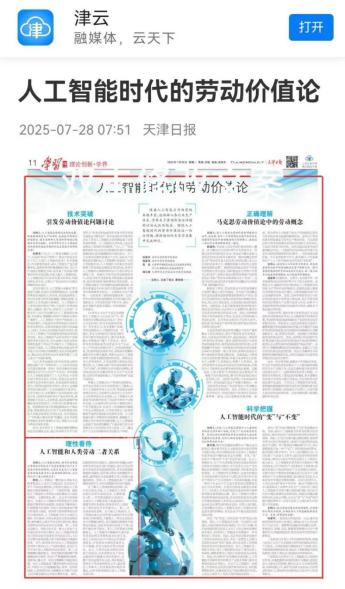《天津日报》、津云报道了台湾女优 荣岩副教授“理性看待人工智能和人类劳动二者关系”的观点